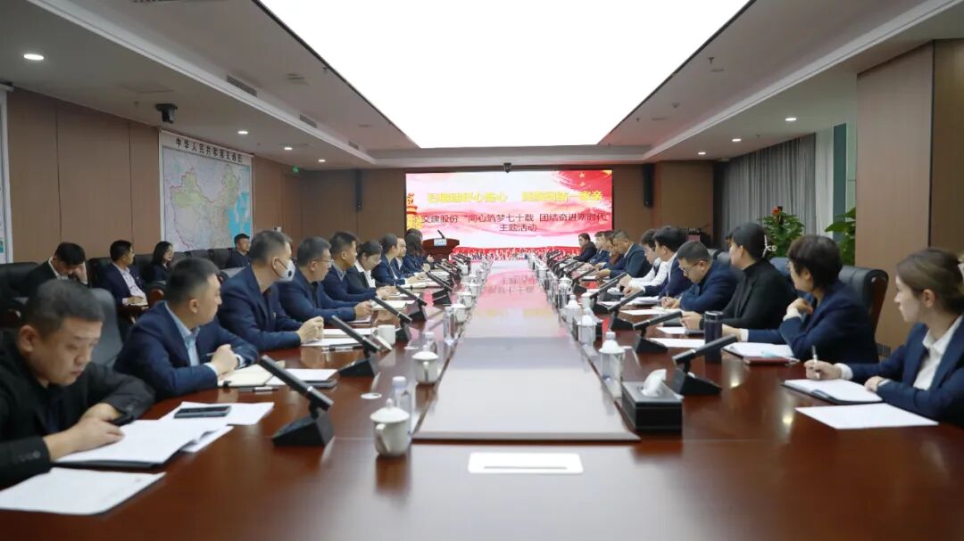 为深入学习贯彻习近平总书记关于加强和改进民族工作的重要思想,有形有感有效铸牢中华民族共同体意识,引导党员干部职工将民族团结进步工作融入企业文化建设,为企业高质量发展凝聚磅礴力量。12月29日,交建股份党委开展“同心筑梦七十载 团结奋进新时代”民族团结一家亲主题活动,通过“理论课堂+榜样引领”的多元形式,组织党员干部与结对亲戚共叙民族团结情,共筑同心向党梦。交建股份党委专职副书记、董事、工会主席李世伟主持活动,交建股份党委副书记 、董事、总经理王永学参加活动并讲话。活动以线上+线下的方式开展,交建股份党委班子成员、高管,总部各党支部书记及结对亲戚、所属各级党组织书记、党员群众代表等共计120余人参加活动。