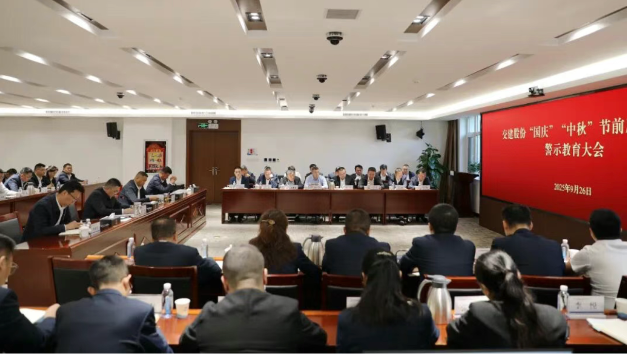 为进一步增强党员干部廉洁自律意识和拒腐防变能力,严防“节日腐败”问题发生,营造风清气正、文明祥和的节日氛围,9月26日,交建股份召开国庆、中秋节前廉洁提醒暨警示教育大会。会议由公司党委书记、董事长王彤主持,公司领导班子成员、中层以上管理人员及所属各子公司、项目部党组织书记、纪委书记(纪检委员)等相关人员参加。