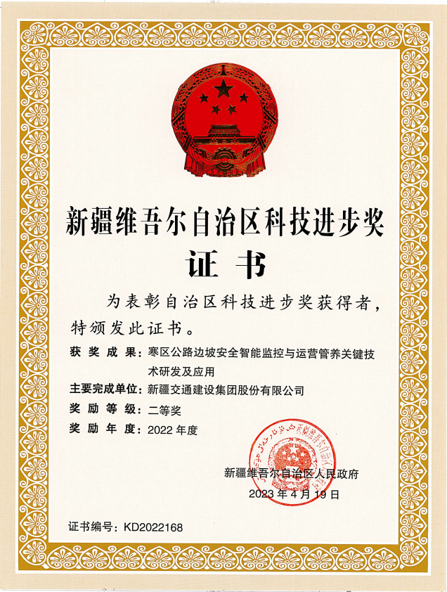 《低温环境大比例掺量废旧沥青混合料再生关键技术研究及应用》自治区科技进步三等奖