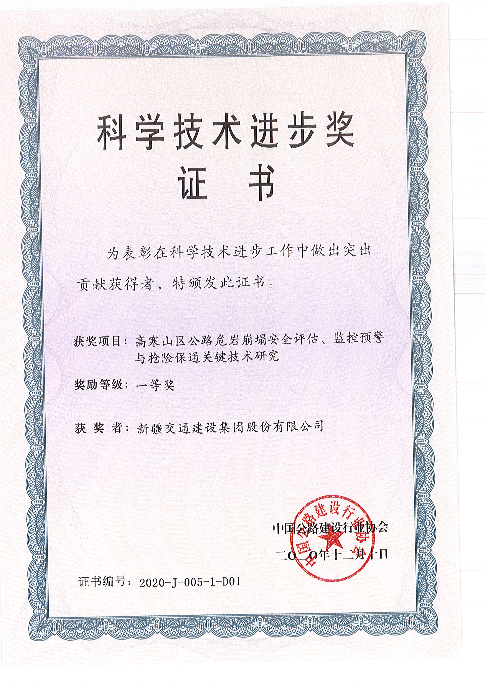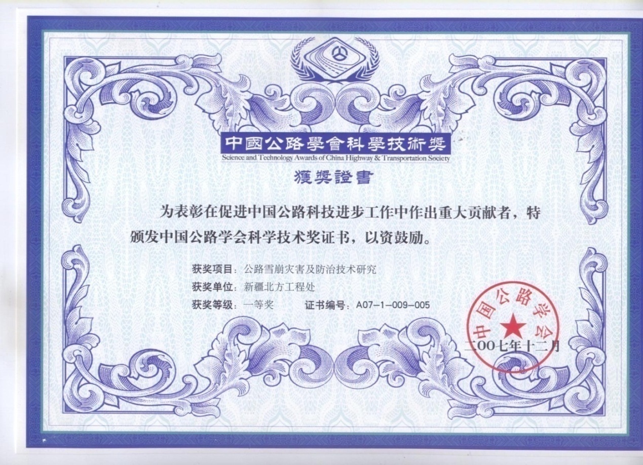 《公路雪崩灾害及防治技术研究》科技一等奖
