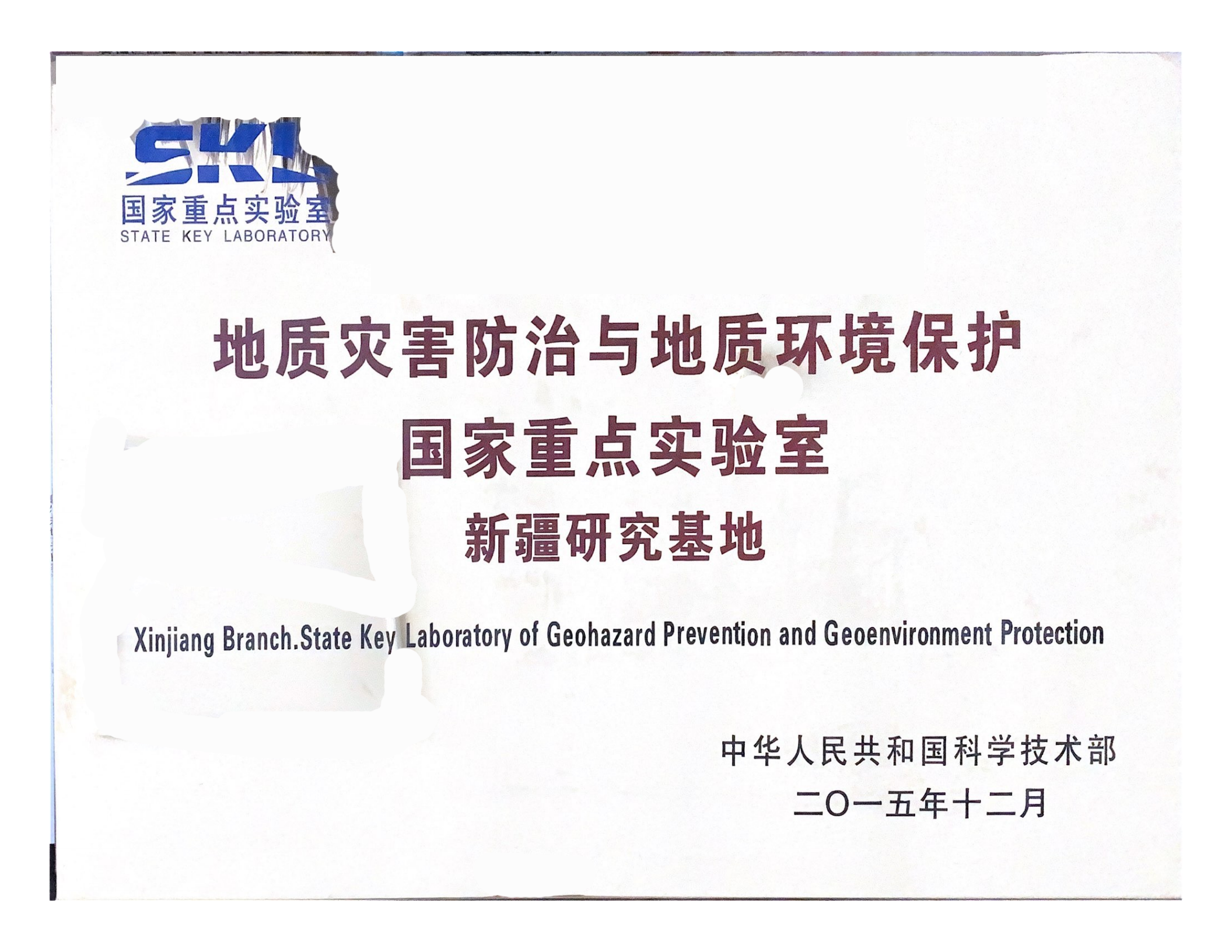 地质灾害防治与地质环境保护重点实验室新疆研究基地