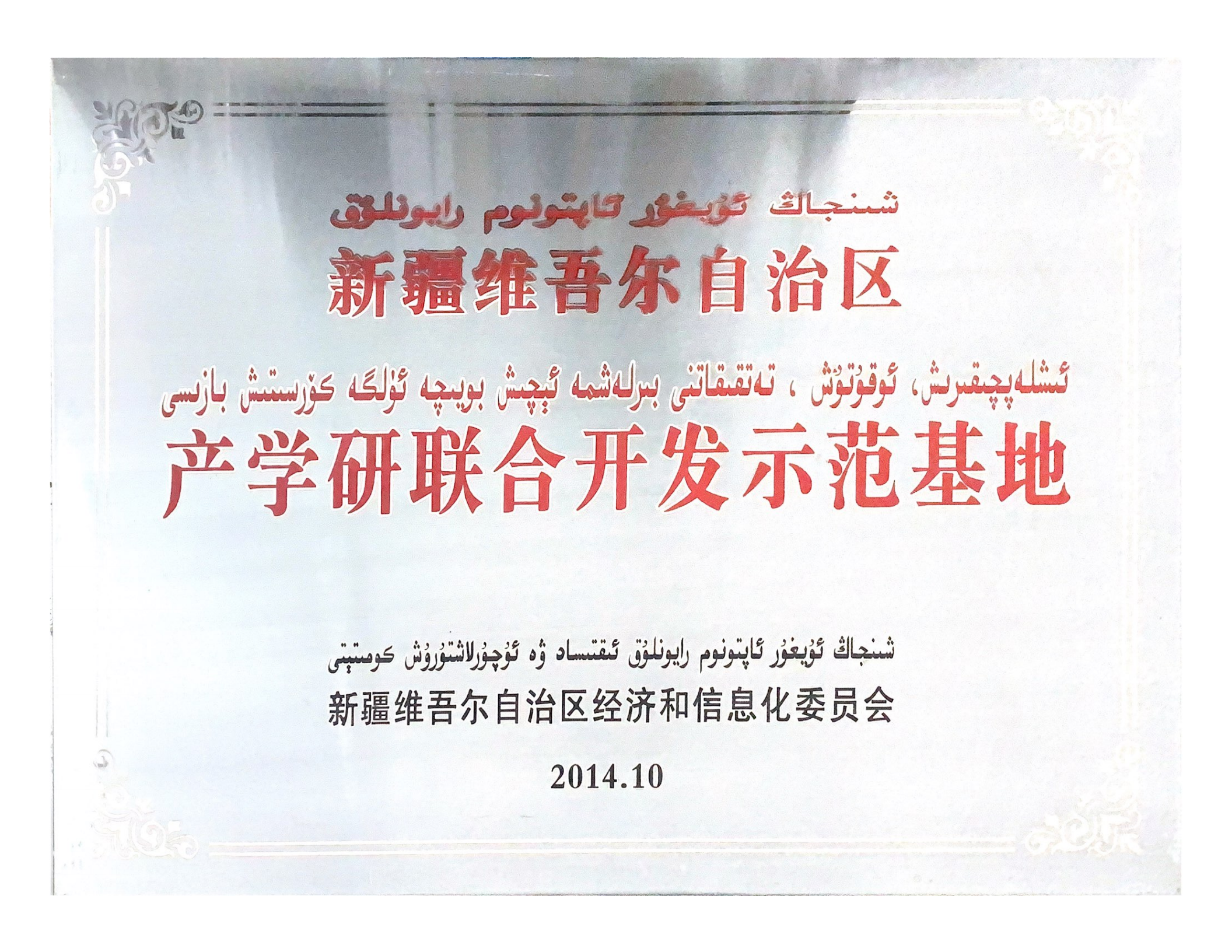 新疆维吾尔自治区产学研联合开发示范基地